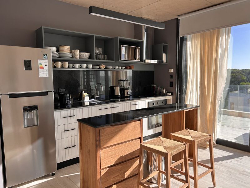 Cocina equipada con electrodomésticos y vajilla de calidad