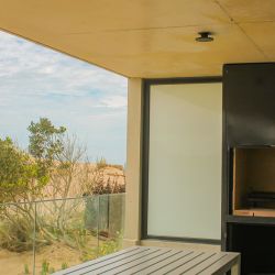 Cómodo balcón con parrilla y mobiliario de diseño