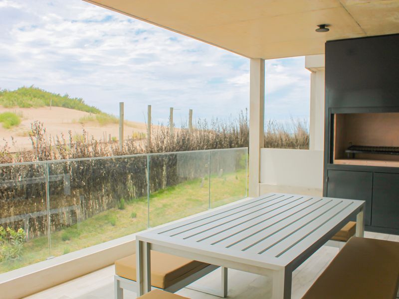 Amplio balcón con parrilla y mobiliario de diseño